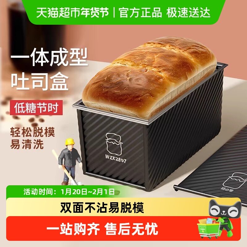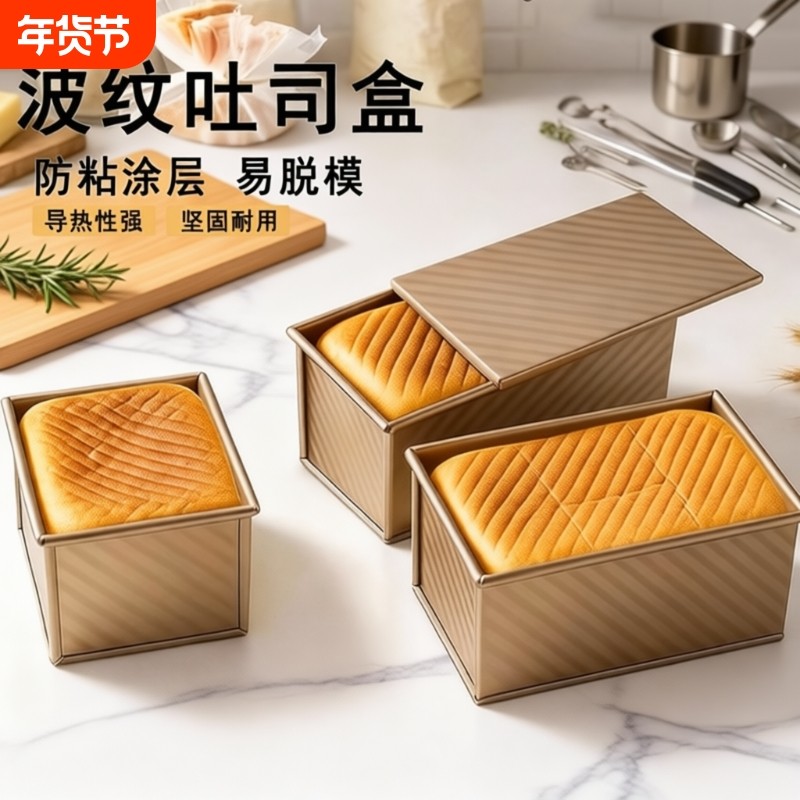 吐司模具碳钢波纹450g带盖子烤箱家用模具带盖盒烘焙小面包吐司盒