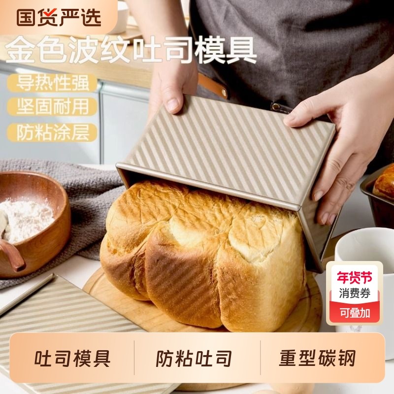 吐司模具盒450g克金色波纹土司盒不粘带盖面包模烤箱家用烘焙模具