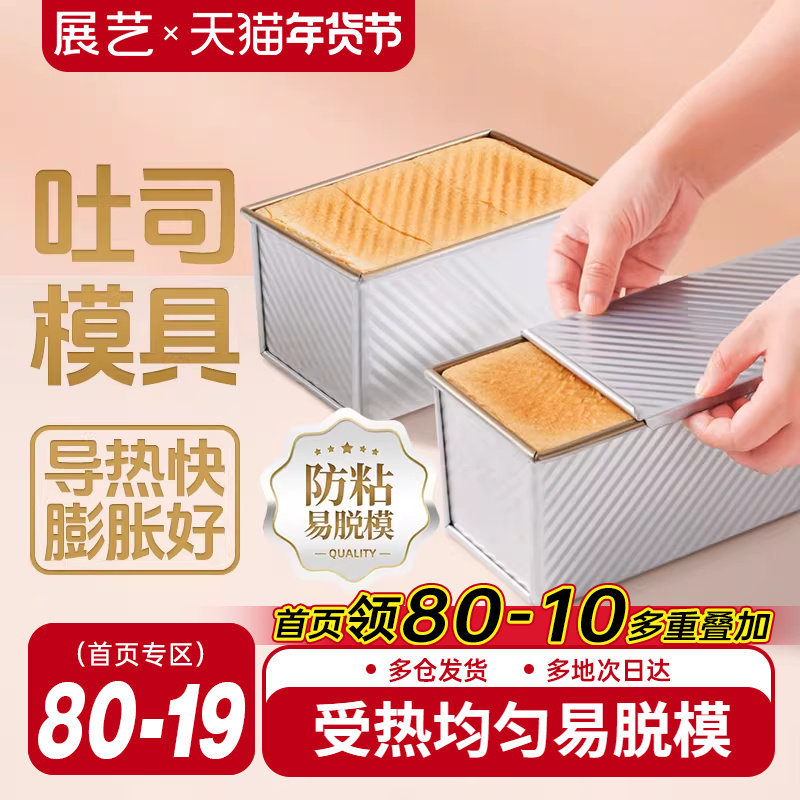 展艺吐司模具面包450g烤箱家用磨具带盖吐司盒土司盒子烘焙防粘