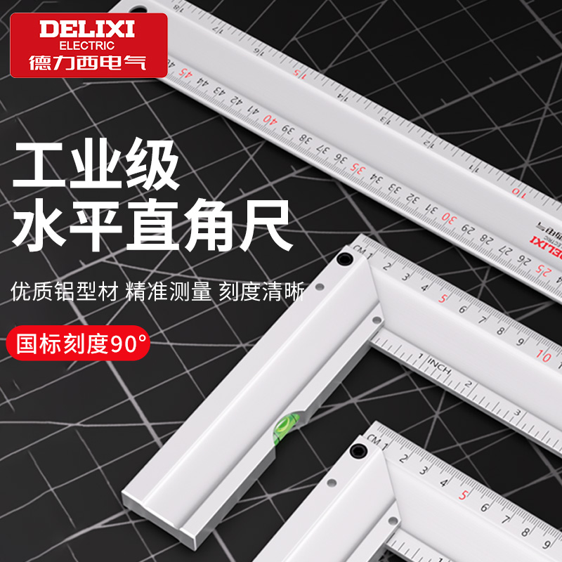 德力西电气全铝直角尺拐尺90度加厚多功能铝合金高精度木工直尺