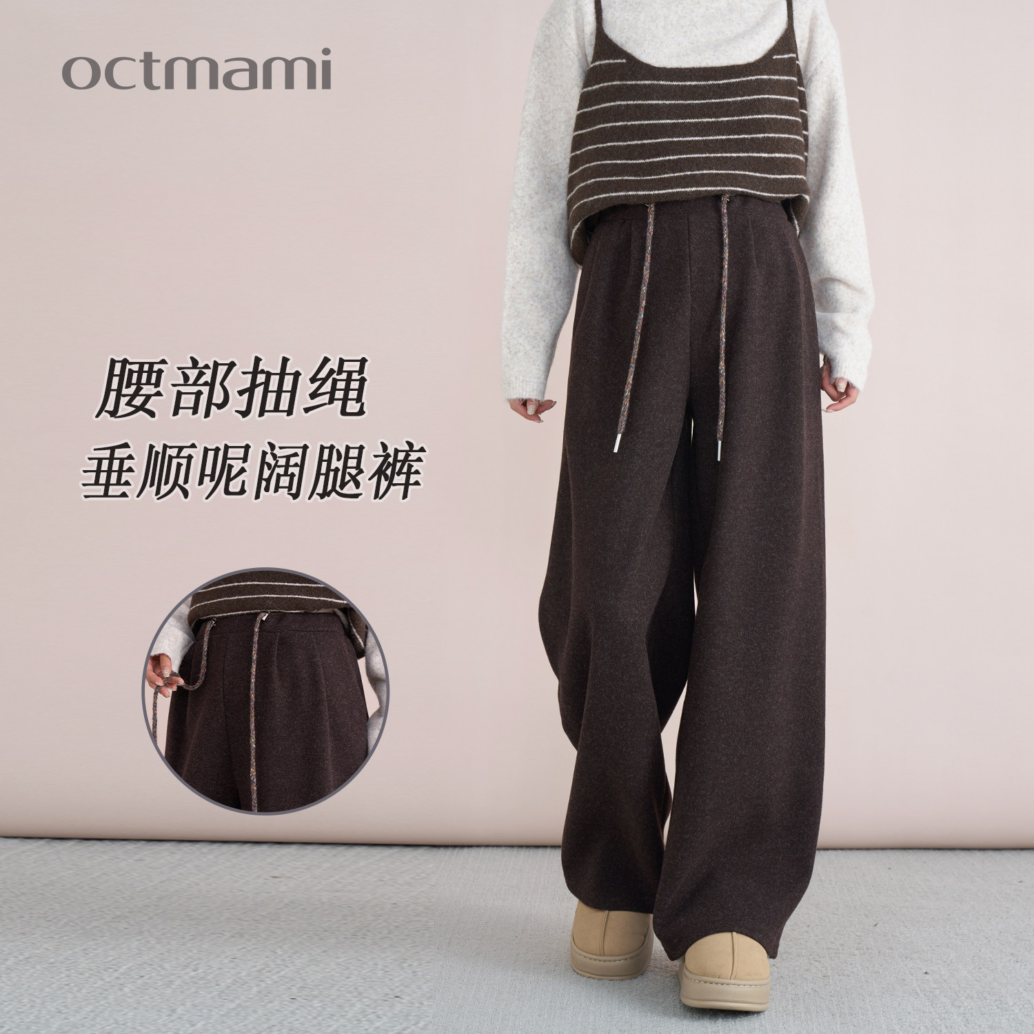 十月妈咪孕妇抽绳加绒加厚直筒裤2025新款冬季外穿宽松休闲裤子