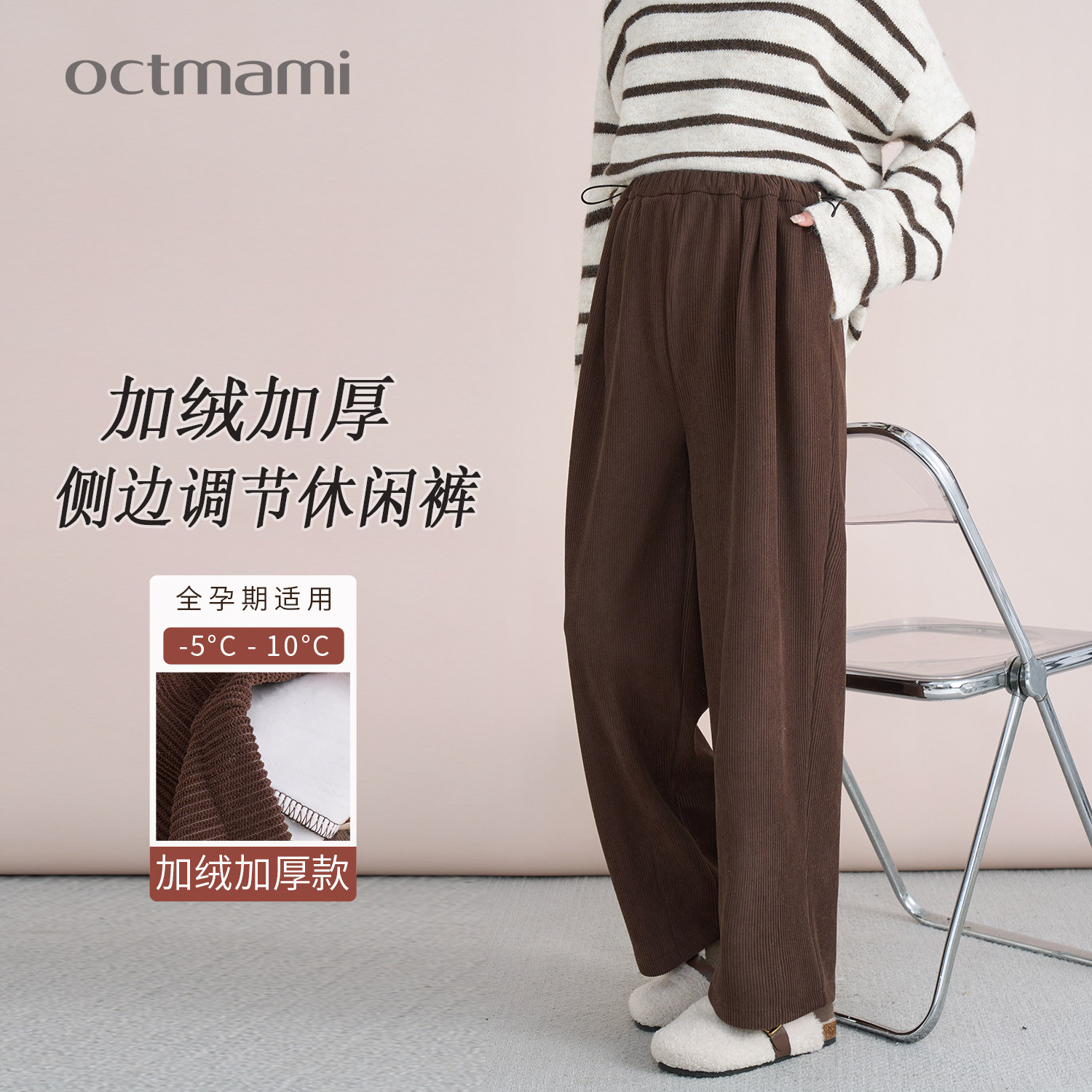 十月妈咪孕妇侧边调节加绒休闲裤2025新款冬季外穿宽松直筒裤冬装