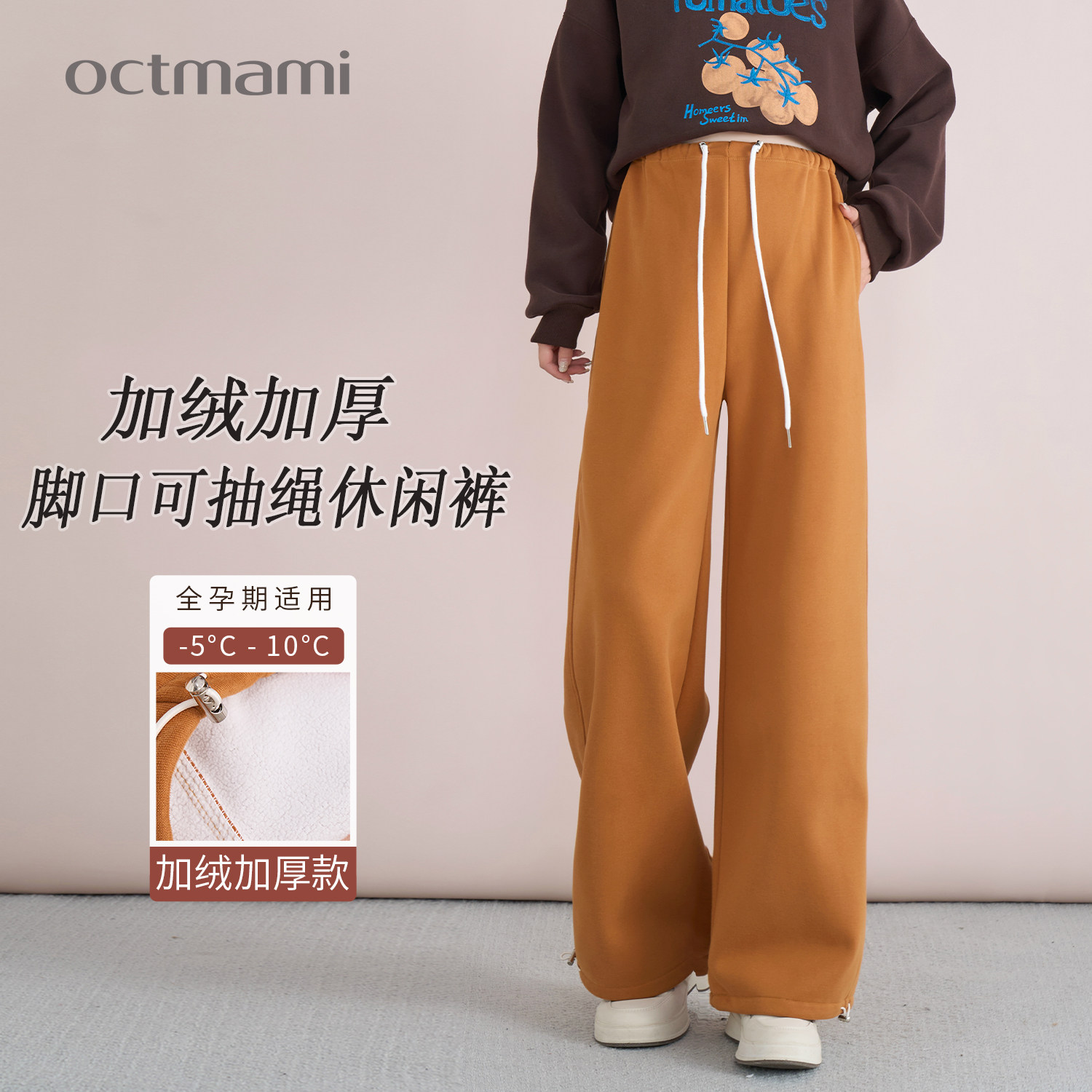 十月妈咪孕妇脚口可抽绳加绒休闲裤2025新款冬季外穿宽松直筒裤子