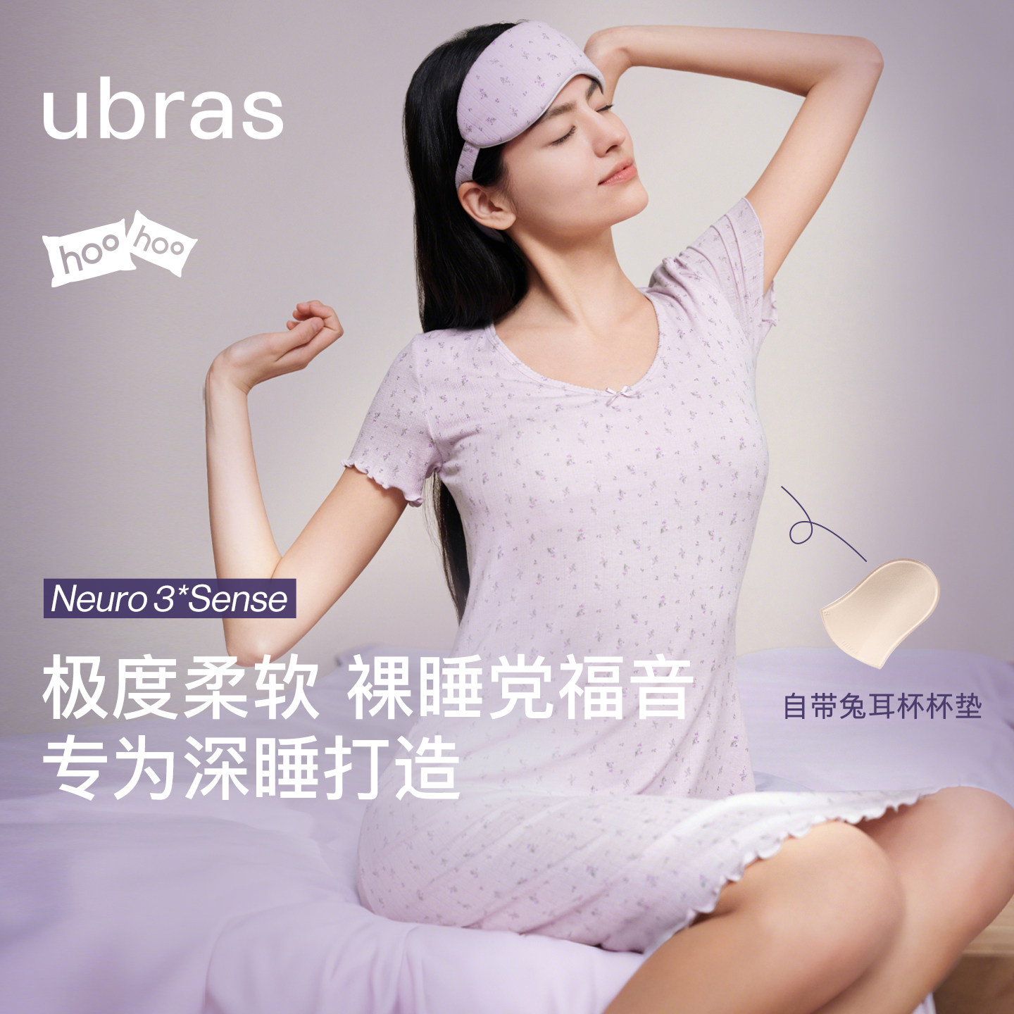 ubras呼呼睡衣V领短袖家居服柔软吊带睡裙女长袖带胸垫26新款春夏