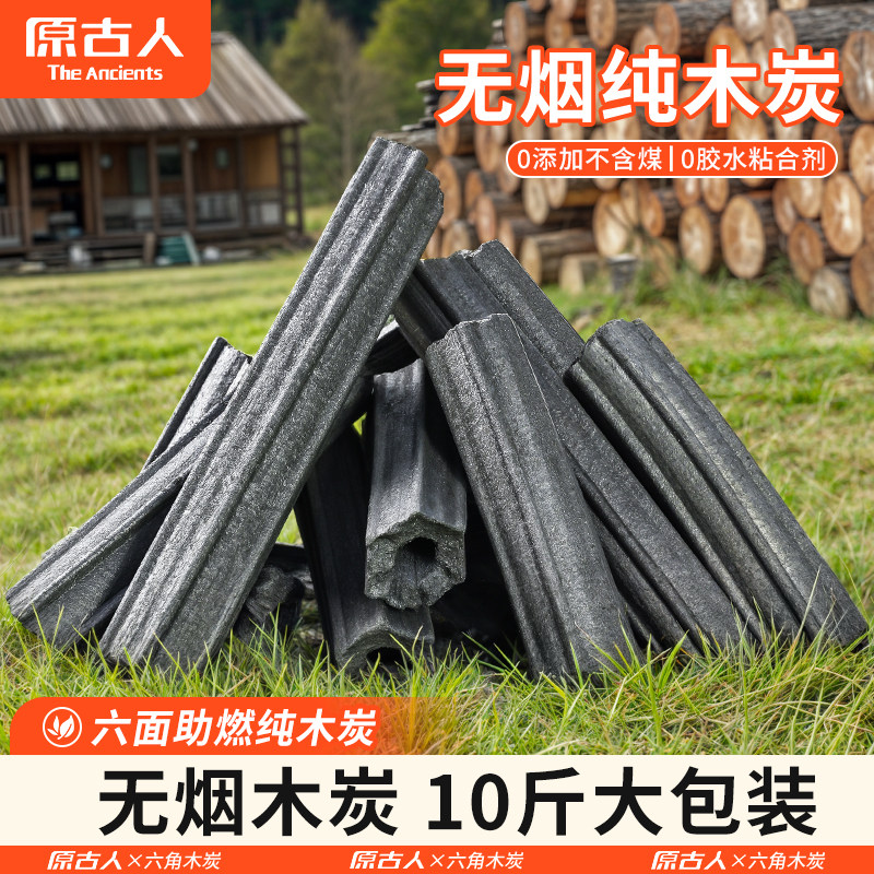 六角纯木炭烧烤木炭果木炭无烟易燃家用户外室内围炉煮茶火锅取暖