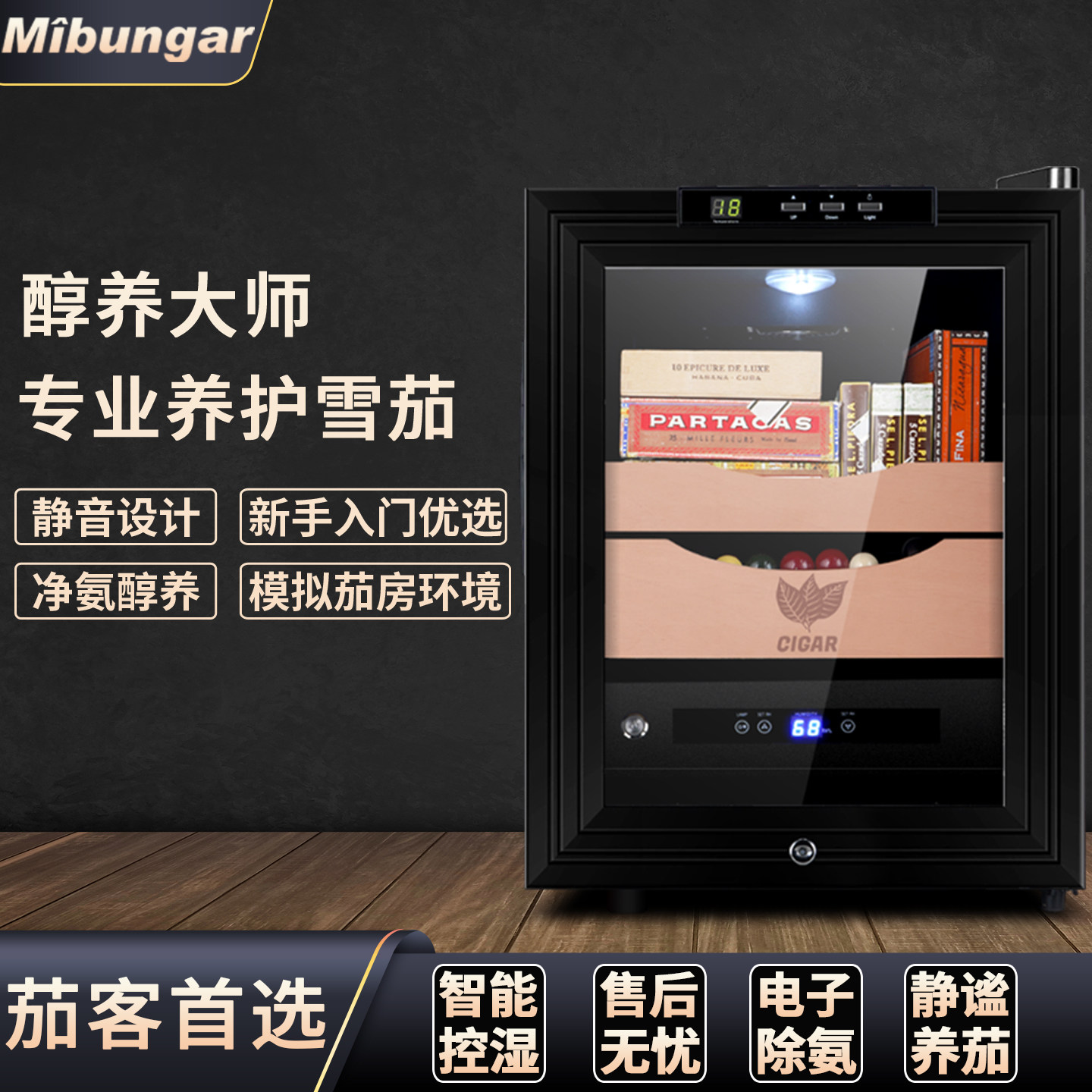 Meibanjia美伴家雪茄柜恒温恒湿迷你压缩机除氨雪茄保湿柜雪松木