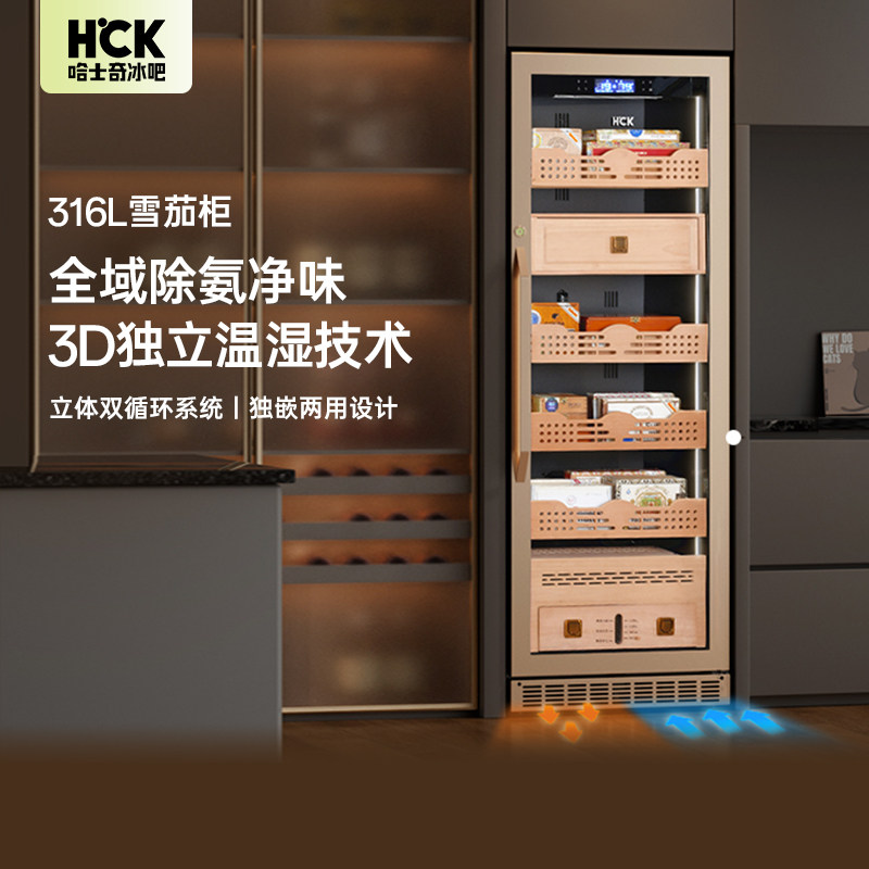 HCK哈士奇雪茄柜恒温恒湿家用茶叶冷藏嵌入雪松木雪茄盒保湿烟柜