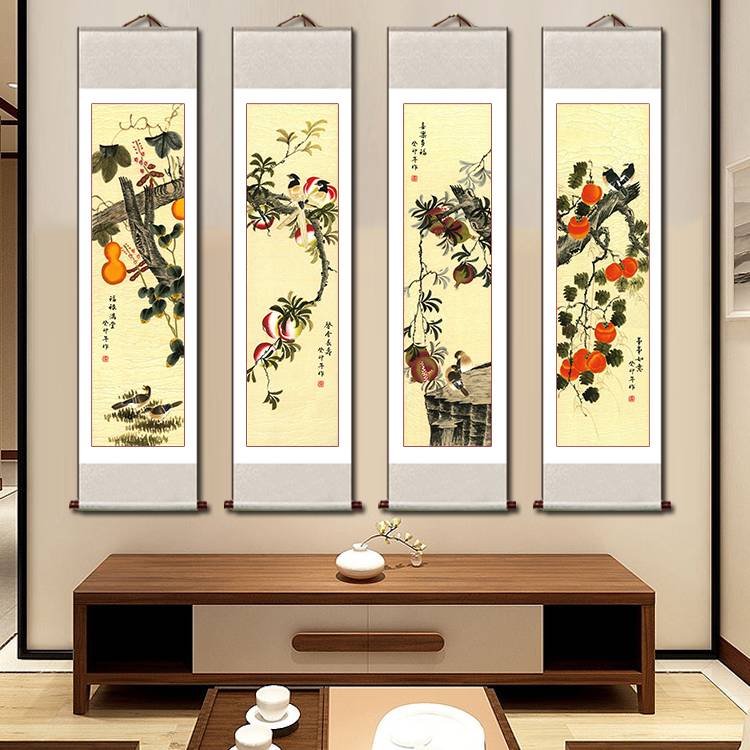 梅兰竹菊福禄寿喜四联幅新中式客厅沙发书房春夏秋冬挂画立轴国画