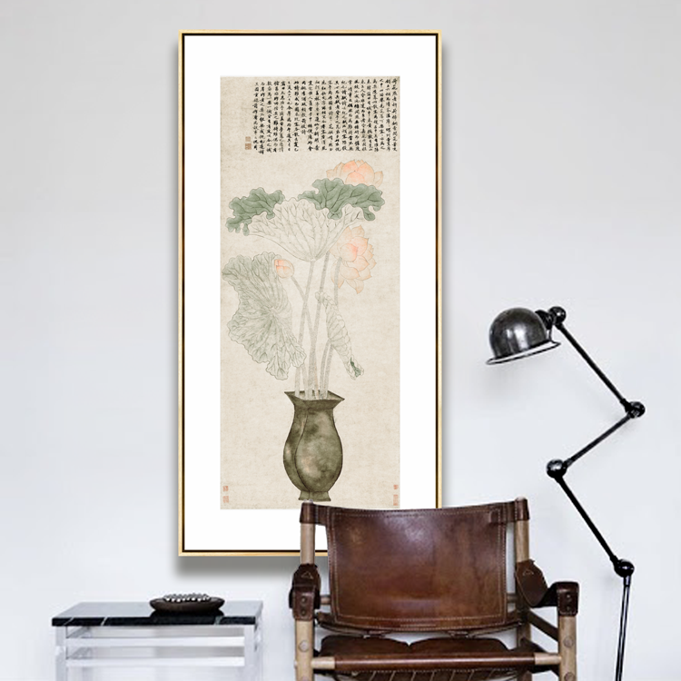 郎世宁装饰画新中式国画床头卧室餐厅花卉鸟牡丹芍药荷花四联挂画