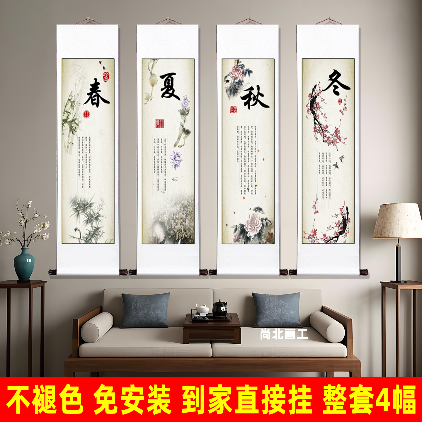 春夏秋冬字画挂轴新中式客厅装饰画餐厅画酒店中国风壁画四联挂画