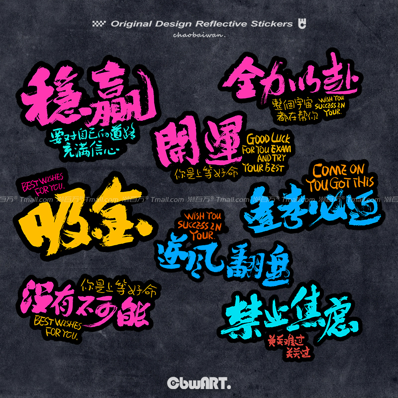 反光车贴中国风书法文字贴纸汽车摩托车头盔电动车身改装贴花防水