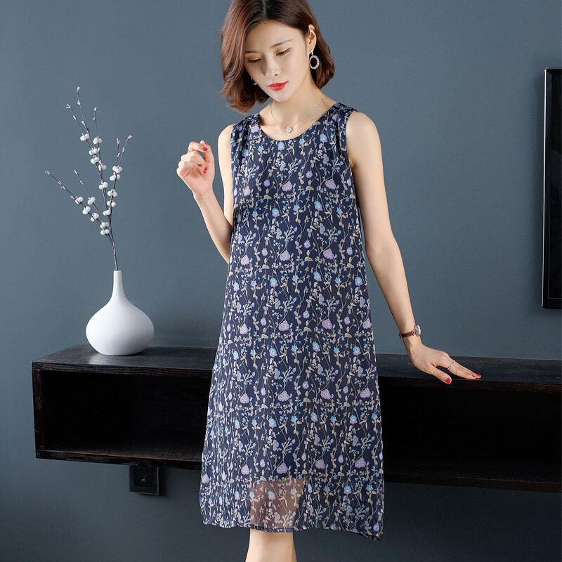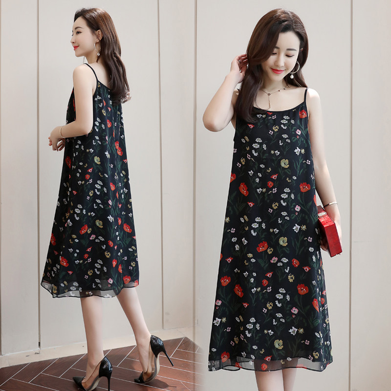 雪纺背心裙女打底裙中长款宽松大码碎花吊带连衣裙2021夏季新款