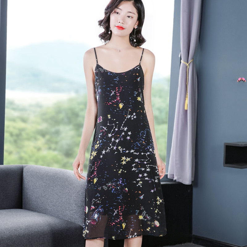 雪纺吊带裙女夏季2021新款碎花连衣裙中长款修身内搭打底裙背心裙