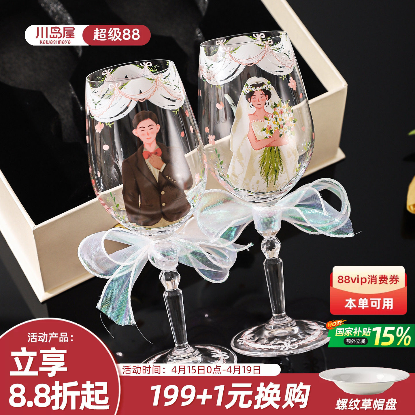 川岛屋敬酒杯红酒杯套装新婚结婚礼物送新人高脚杯2个一对礼盒装