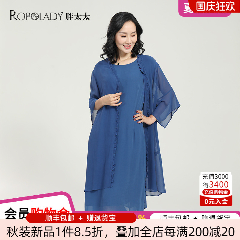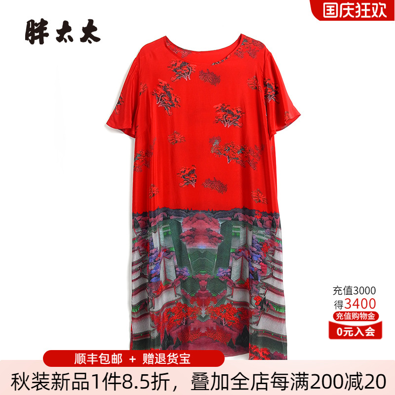 胖太太加大码女装秋夏季新款圆领短袖连衣裙100%桑蚕丝720100740