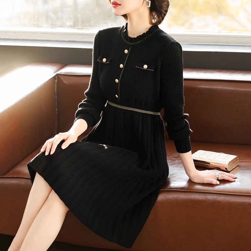 针织羊毛衫连衣裙时尚秋冬女装新品中长款宽松加大码洋气百搭毛衣