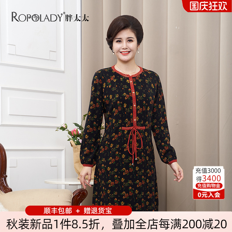 特大码妈妈装长袖T恤300斤春秋装打底衫连衣裙中老年女装加肥加大