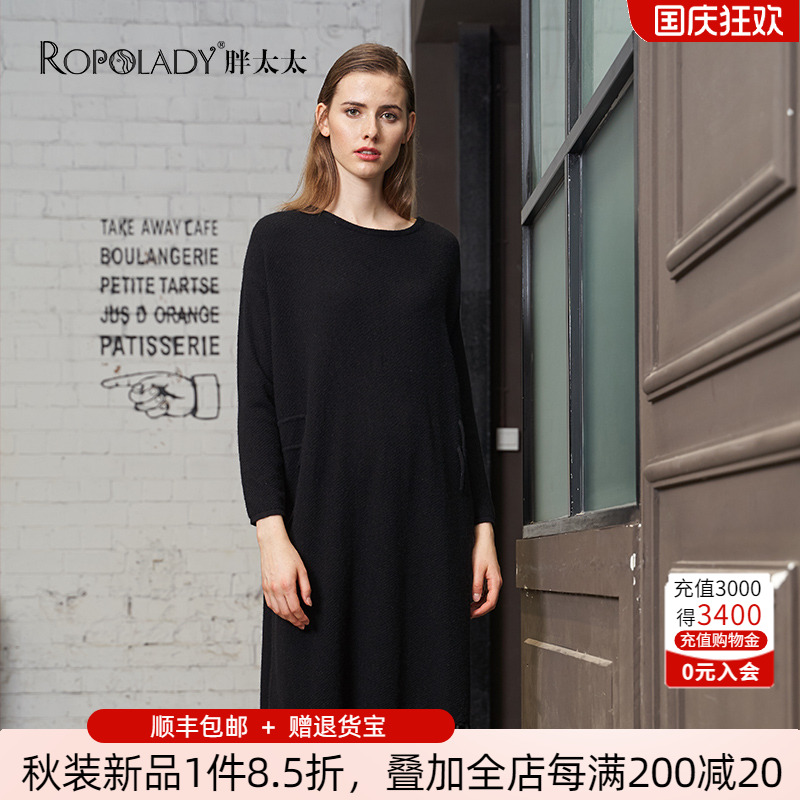 加大码女装秋冬季新款胖mm宽松显瘦row风连衣裙外穿打底过膝长裙
