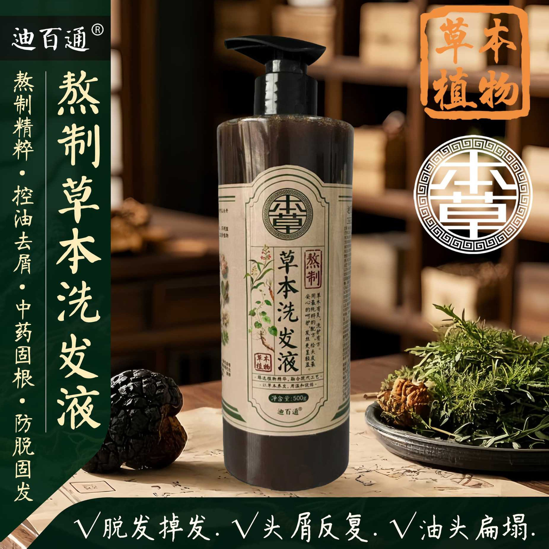纯植物中药洗发水防脱生发增密发手工熬制何首乌侧柏叶去屑止痒膏