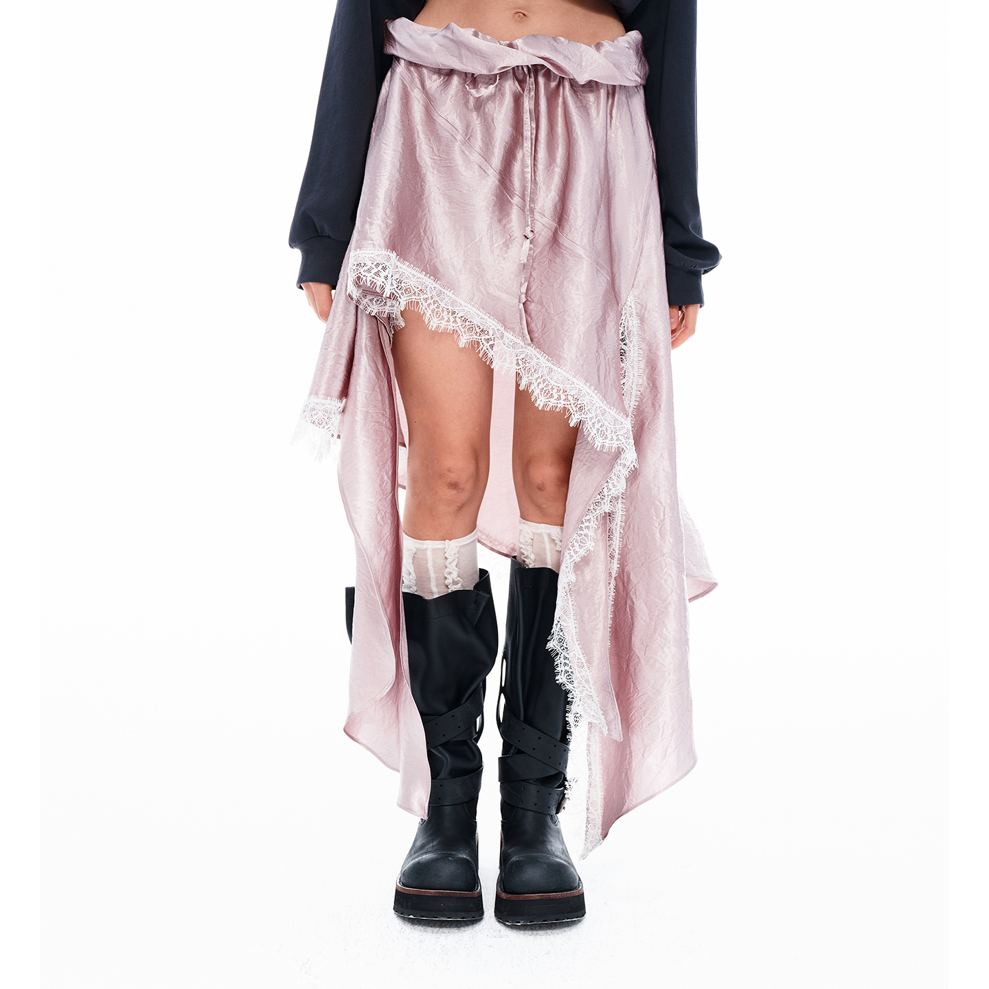 VINZOO - 原创灰粉色不规则短裙女流浪感浪漫蕾丝拼接半身裙新款