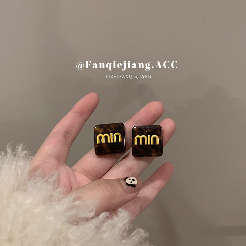 纯银耳钉复古法式方形豹纹字母耳环小众高级感简约轻奢小众设计感