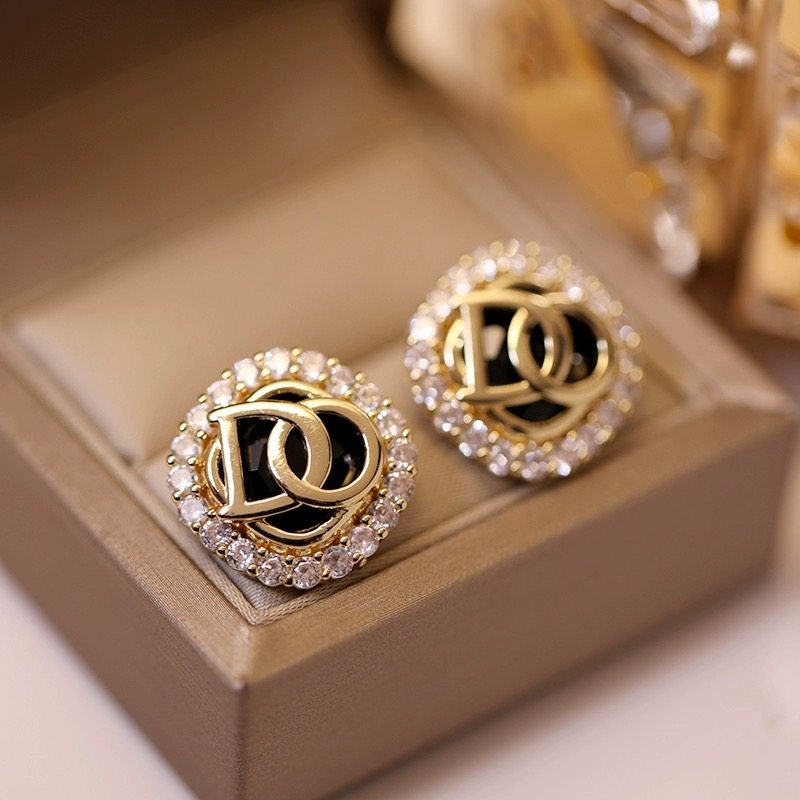 DICD/D家字母金色纯银针耳钉女小众高级感睡觉免摘养耳洞耳环耳饰