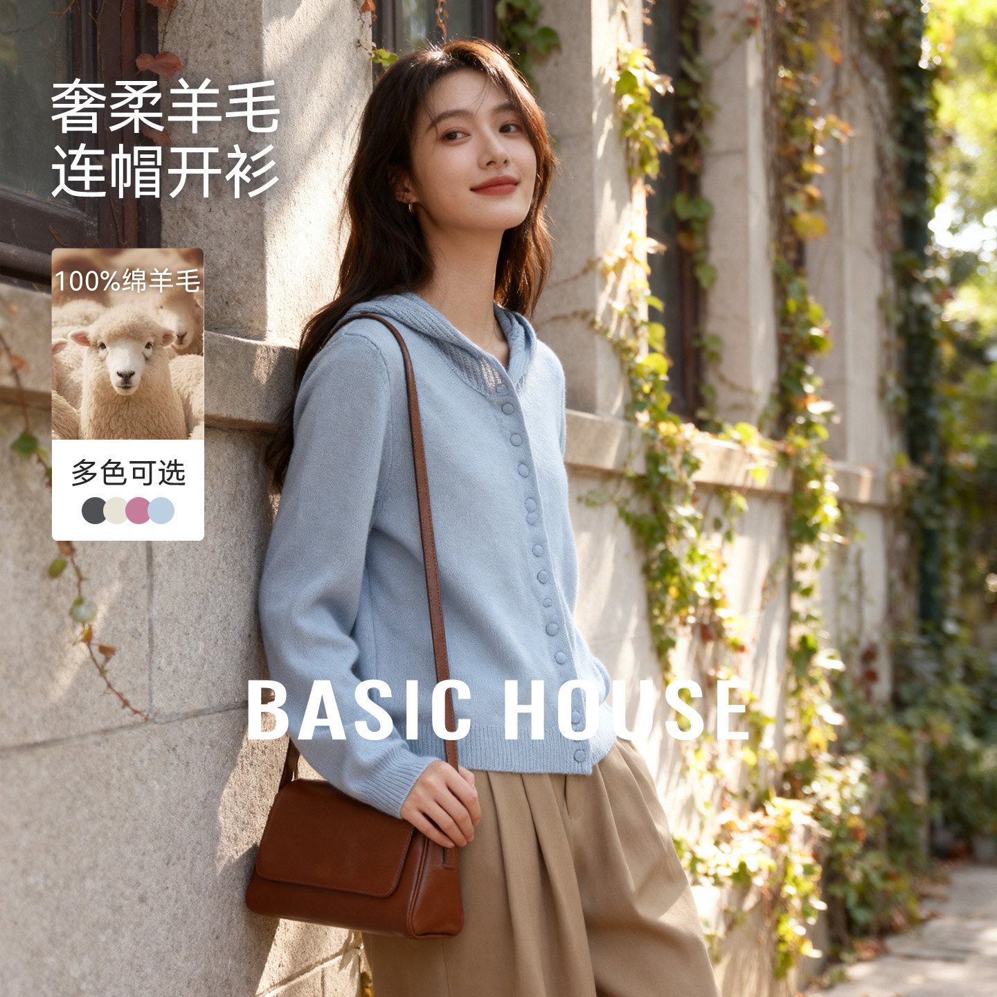 【100%绵羊毛】百家好连帽毛衣开衫女秋冬季2025新款显瘦针织上衣