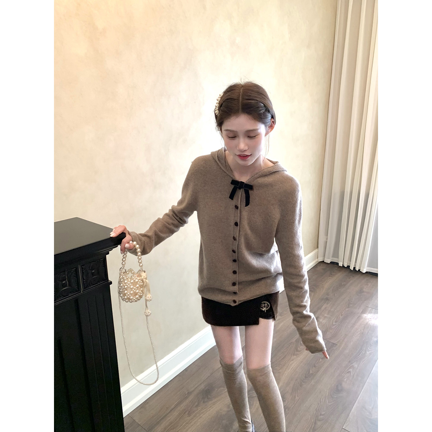 桃可了 奶咖香氛 很衬肤色的软糯显瘦甜美羊毛连帽毛衣开衫女冬季