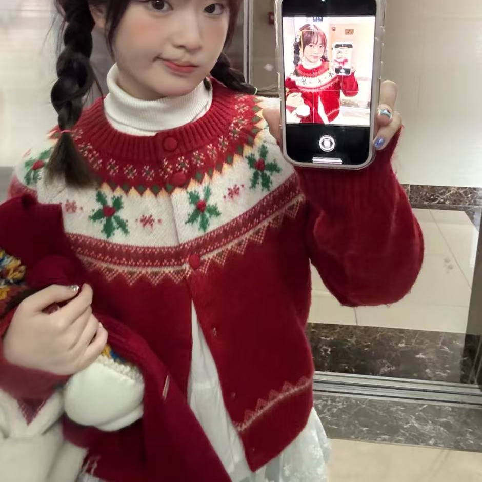 ICH MODE 美式复古圣诞针织毛衣开衫女2026新款春季休闲毛衣外套