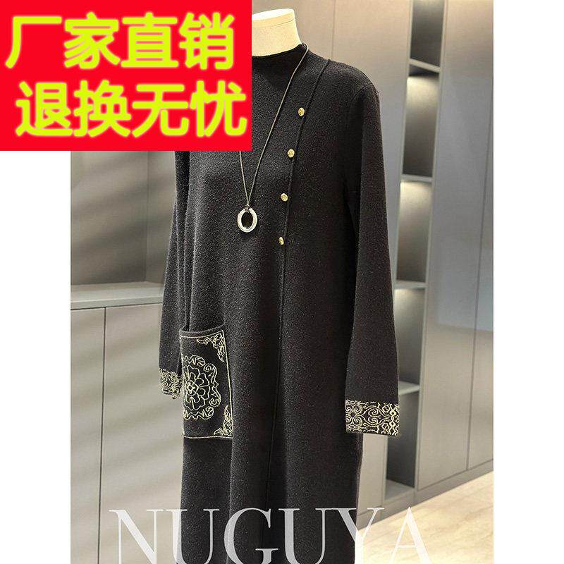 时尚洋气中长款针织连衣裙女妈妈装冬装新款大码中老年毛衣裙子厚