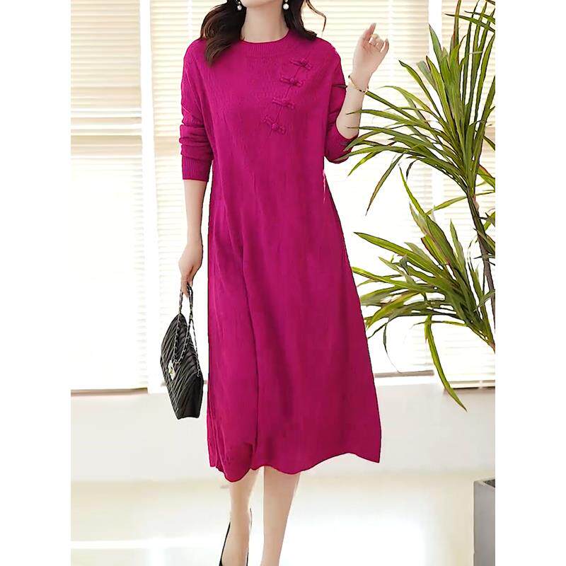 时尚休闲大码妈妈装针织连衣裙女冬装新款中长款加厚毛衣裙子中年