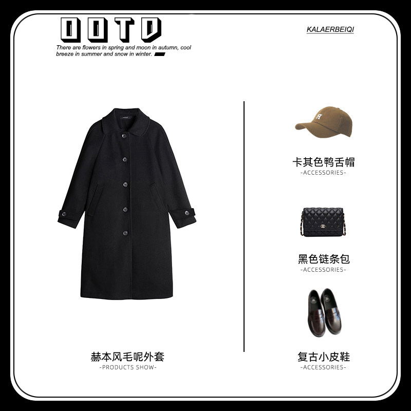 外贸出口转内销黑色大码毛呢外套连衣裙冬装新款早秋季女装搭配大