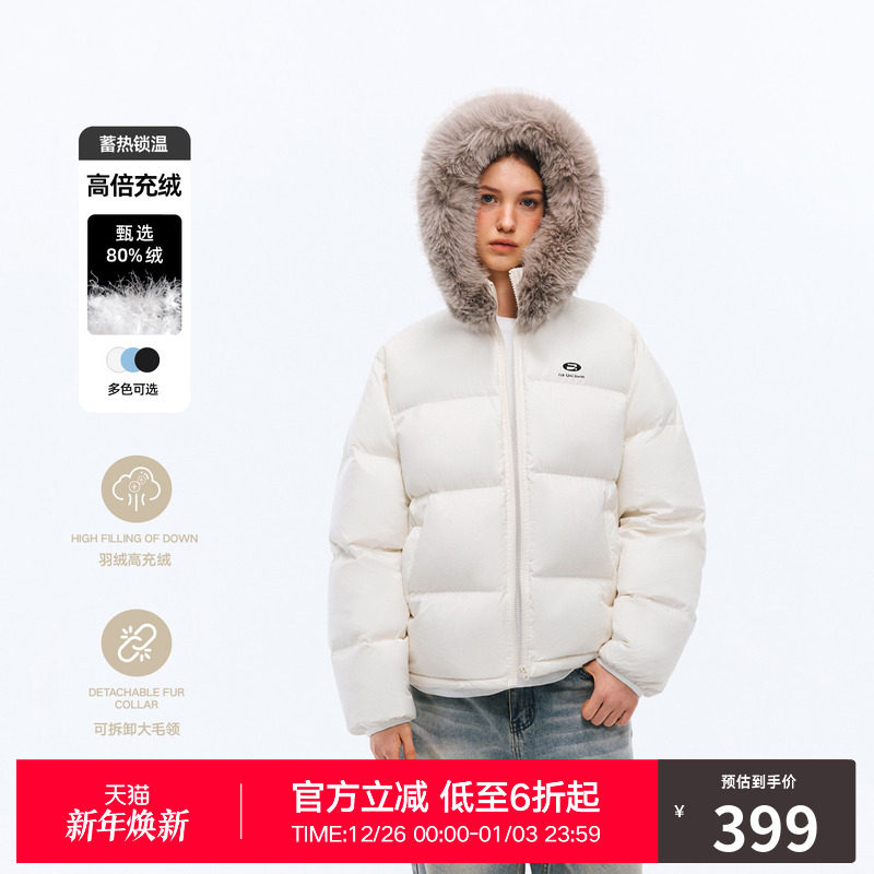 太平鸟男装 毛领羽绒服男2025年冬季新款保暖短款立领面包防寒服
