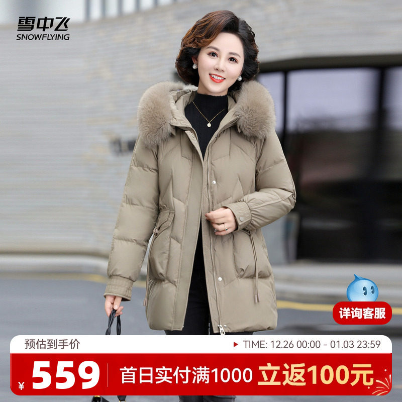 雪中飞羽绒服女短款中年妈妈狐狸毛领翻领冬装中老年新款减龄外套