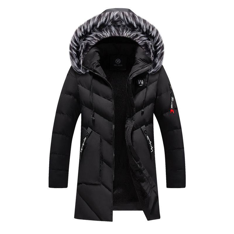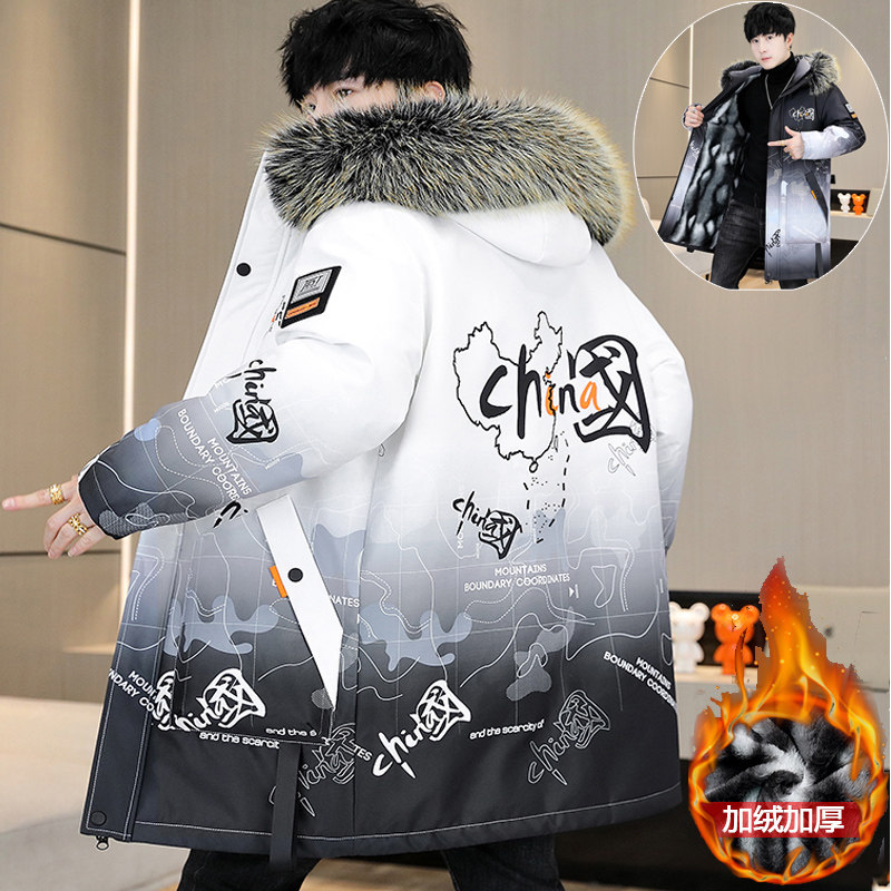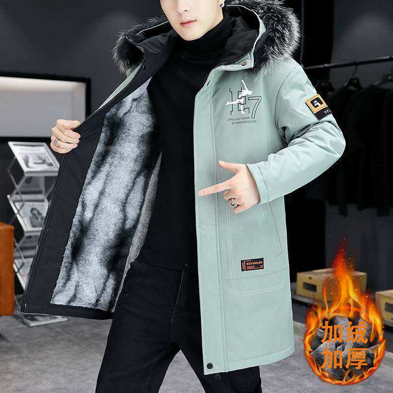冬季男士羽绒服加绒加厚中长款修身休闲大码连帽青少年保暖棉袄子