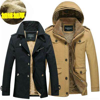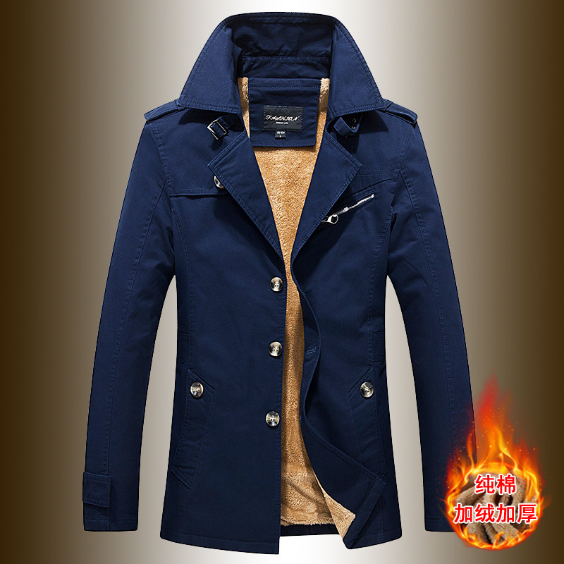 秋冬季男士中长款加绒加厚保暖纯棉衣服冬装韩版修身休闲风衣外套