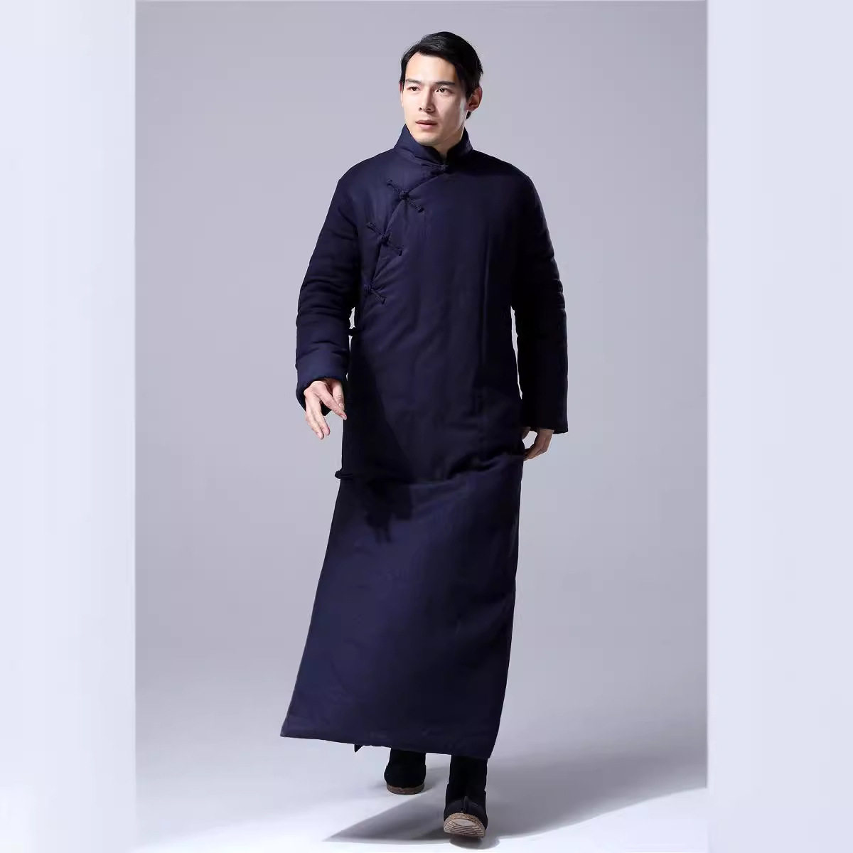 2025冬季男士立领修身长款加厚棉衣斜襟长棉袍保暖复古民国风棉袄