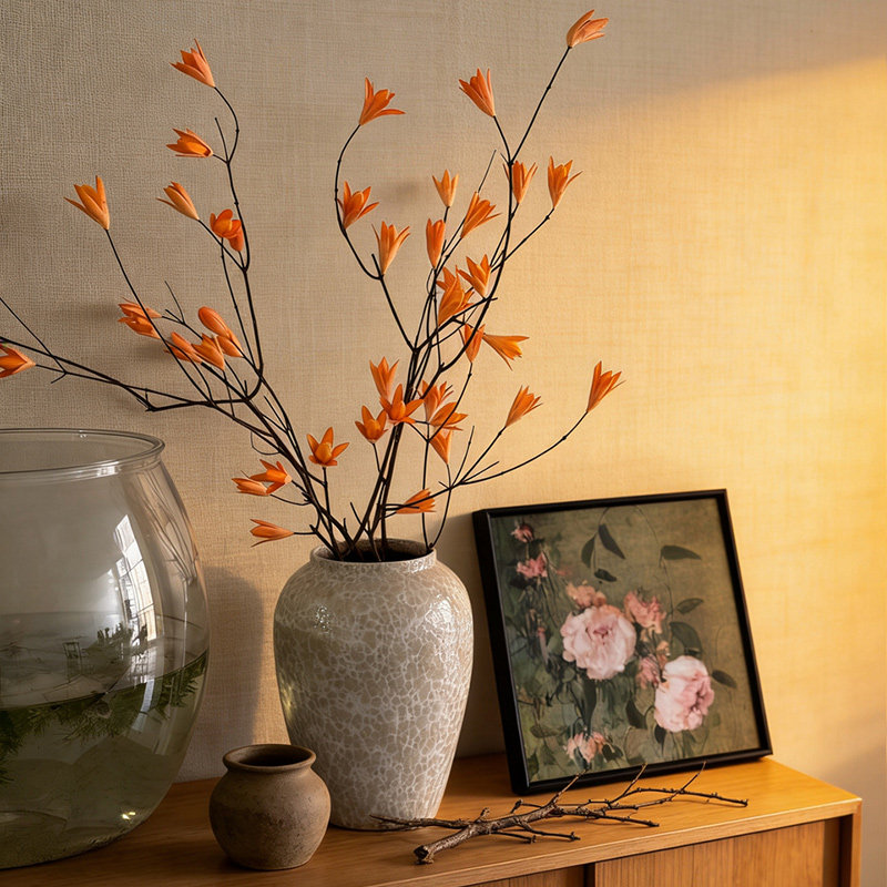 宋氏中古风假花干花树枝仿真花摆设轻奢高端客厅电视柜装饰品摆件