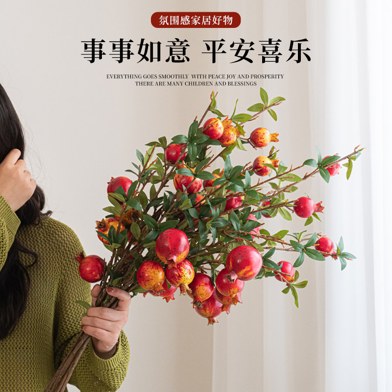 仿真花石榴果实高档装饰摆设室内客厅餐桌玄关假花干花树枝插花束