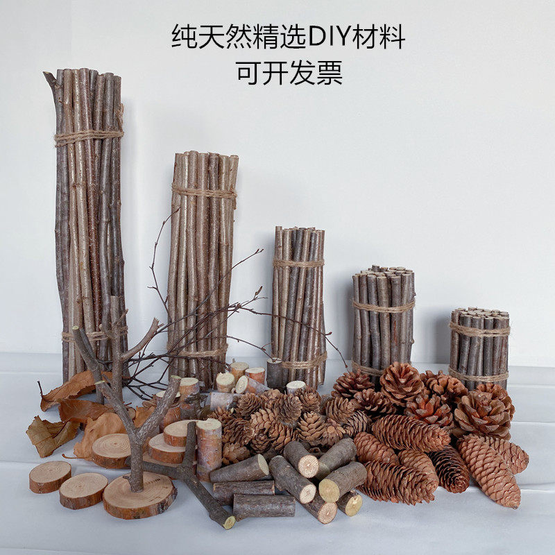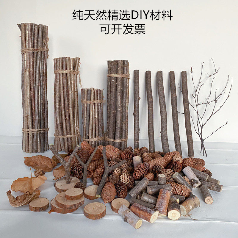 干树枝家居装饰木棒干花树枝幼儿园环创手工diy 森系麻绳松果木片