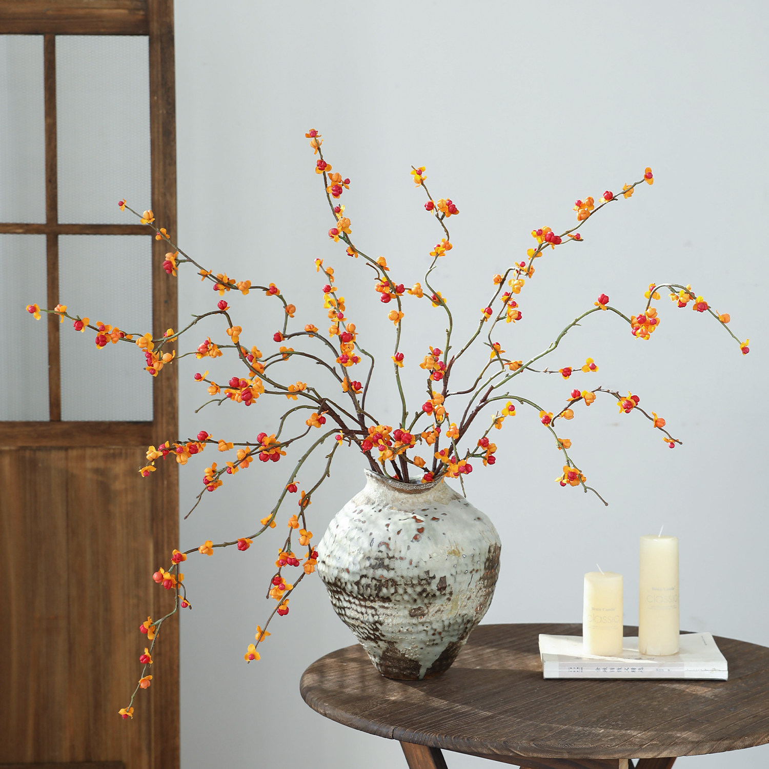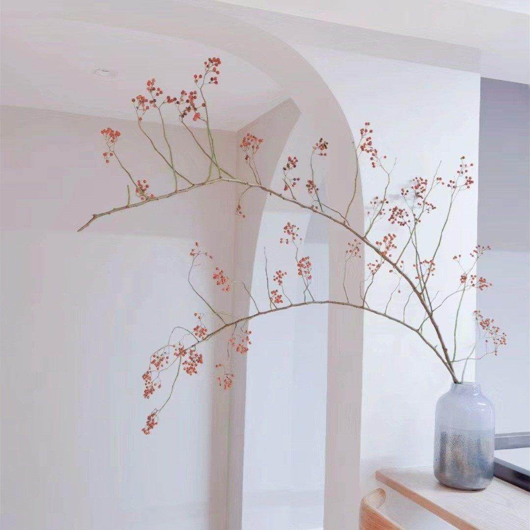 山归来红果永生花不掉果天然干花树枝高级侘寂风摆件植物客厅摆设