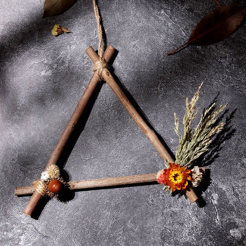 干树枝墙壁装饰干花树枝幼儿园手工diy材料森系麻绳松果木片环创