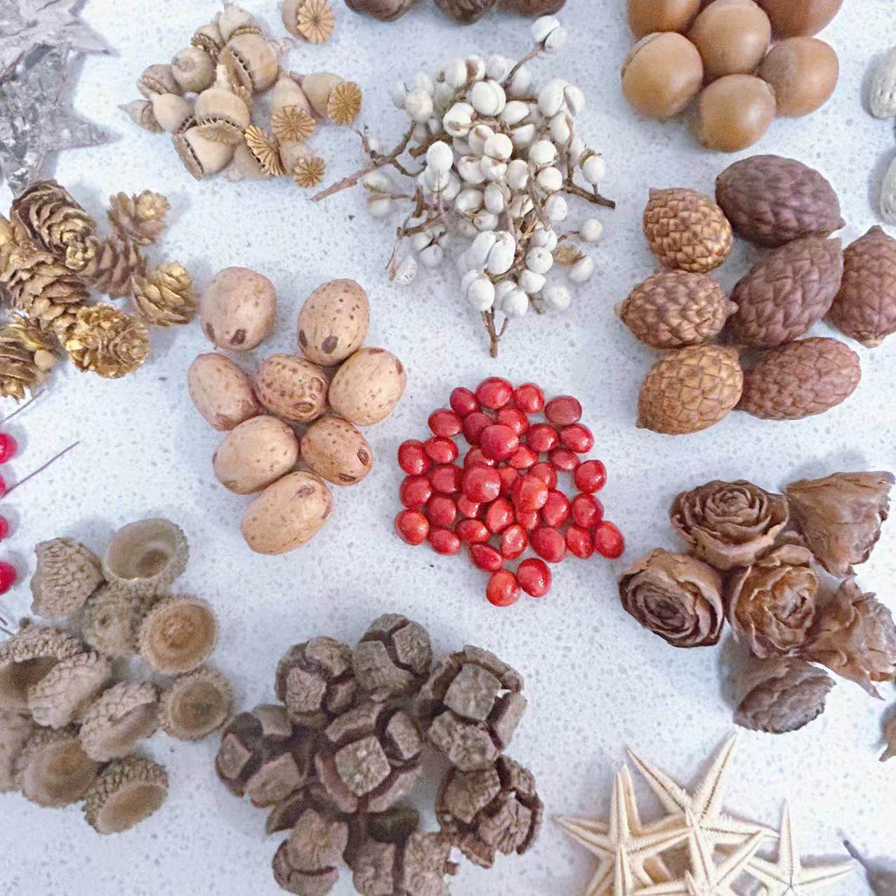 松果天然干花树枝装饰手工制作zakka幼儿园diy红果松针圣诞节材料