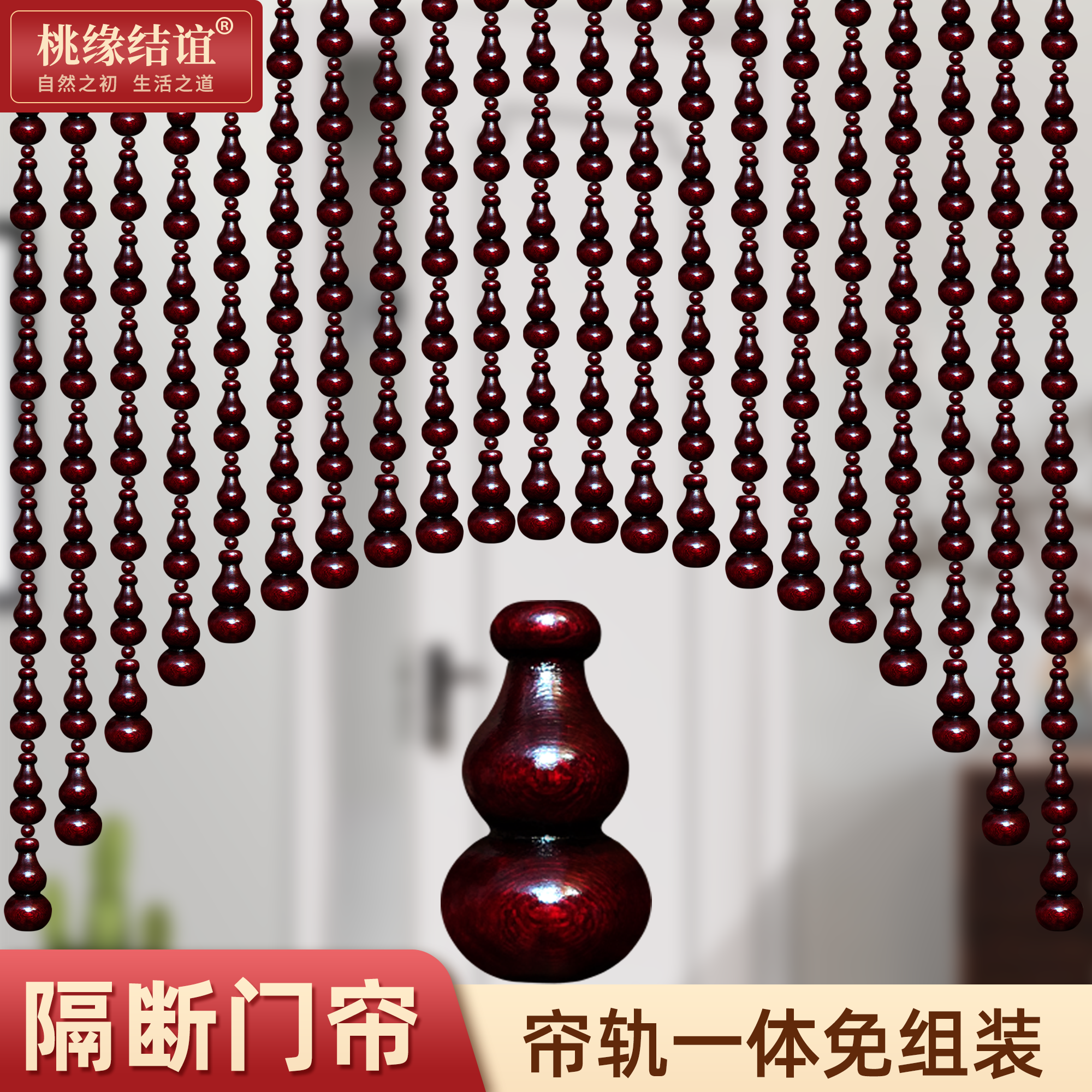 全桃木葫芦珠帘门帘隔断帘化解卫生间卧室客厅新款家用免打孔帘子