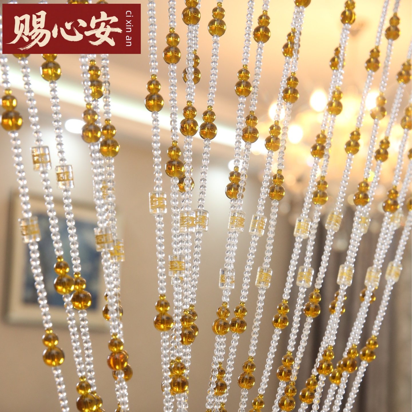 满穿琥珀葫芦珠帘 客厅水晶玻璃隔断挂帘子 卧室卫生间门帘珠帘