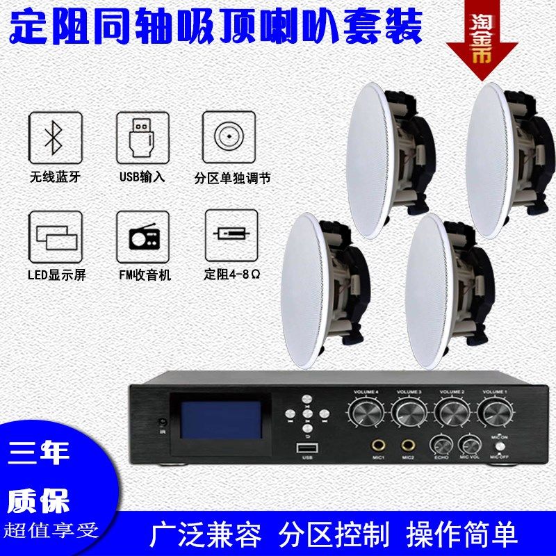 定阻同轴分频家庭酒店美容美甲咖啡厅多功能功放吸顶喇叭音箱套装