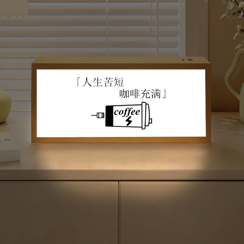 咖啡厅氛围感小夜灯咖啡角茶水间发光装饰画coffee馆蓝牙音响摆画