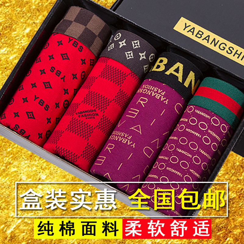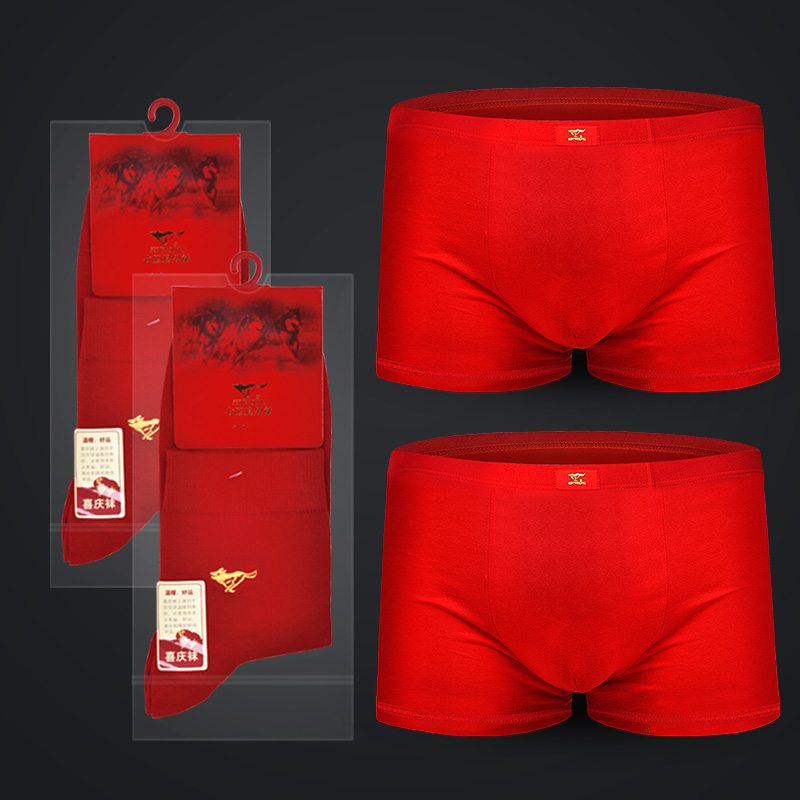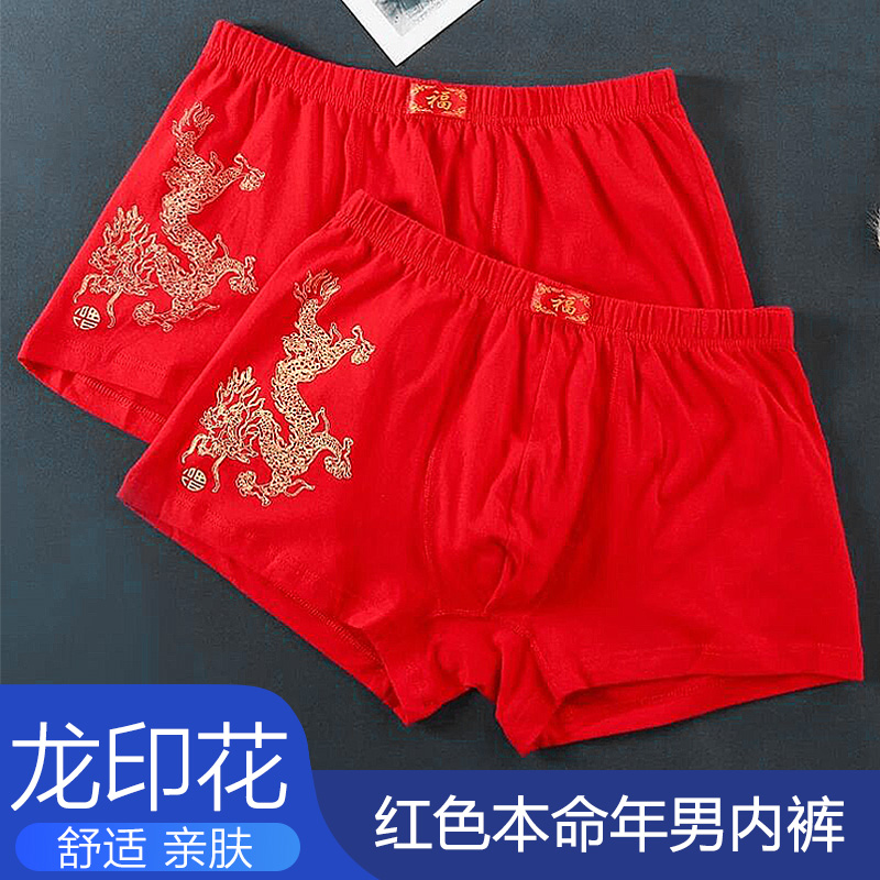 本命年男士内裤属龙男平角裤红色纯棉青年短裤头个性四角男土底裤