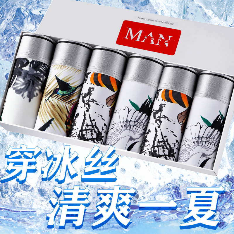 广州汕头男土内裤广东普宁揭阳冰丝四角无痕大码平角薄款中山小榄