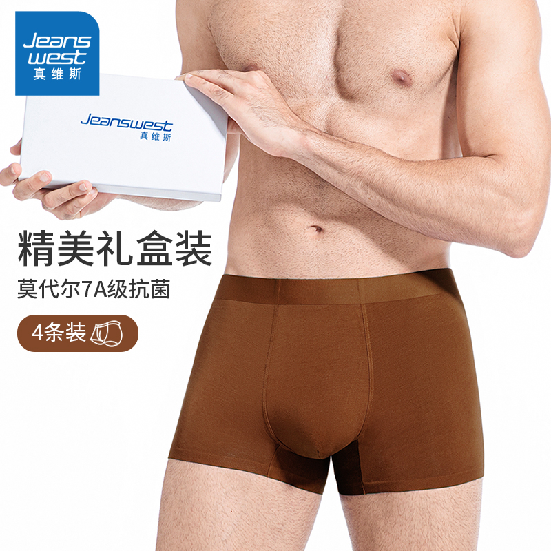 真维斯莫代尔内裤男士棕色抗菌男生平角短裤头土咖啡色四角底裤男